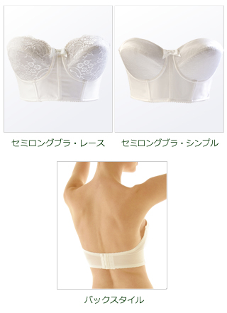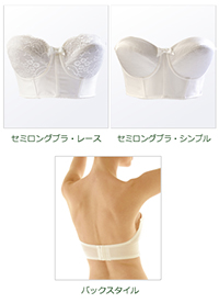 インポートドレスなど背中の大きく開いたドレスや胸元が深く開いているドレスに適したバックレスタイプ。
