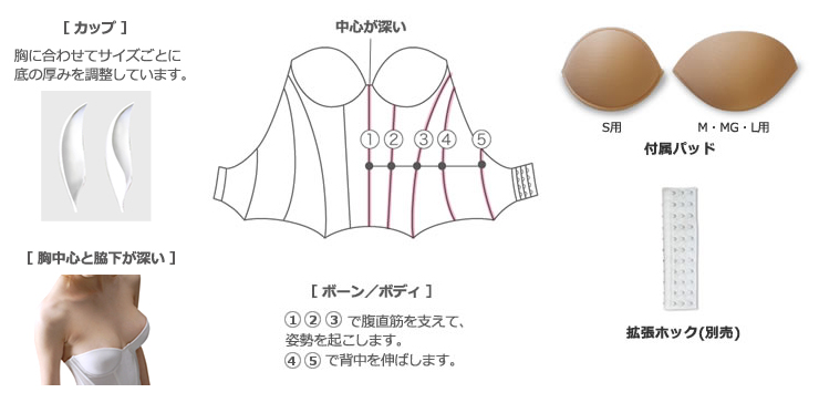 ふくよかな胸をしっかりと抑えるビスチェです。