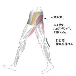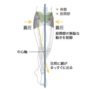 股関節まわりの筋力を制御して歩行と姿勢を正しく安定させ、ラクにします。
